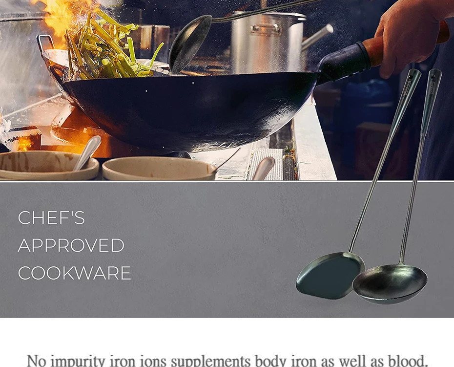 ********* KONCO- Chinese Traditional HandMade Iron Spatula & Ladle Wok Tool Set***********