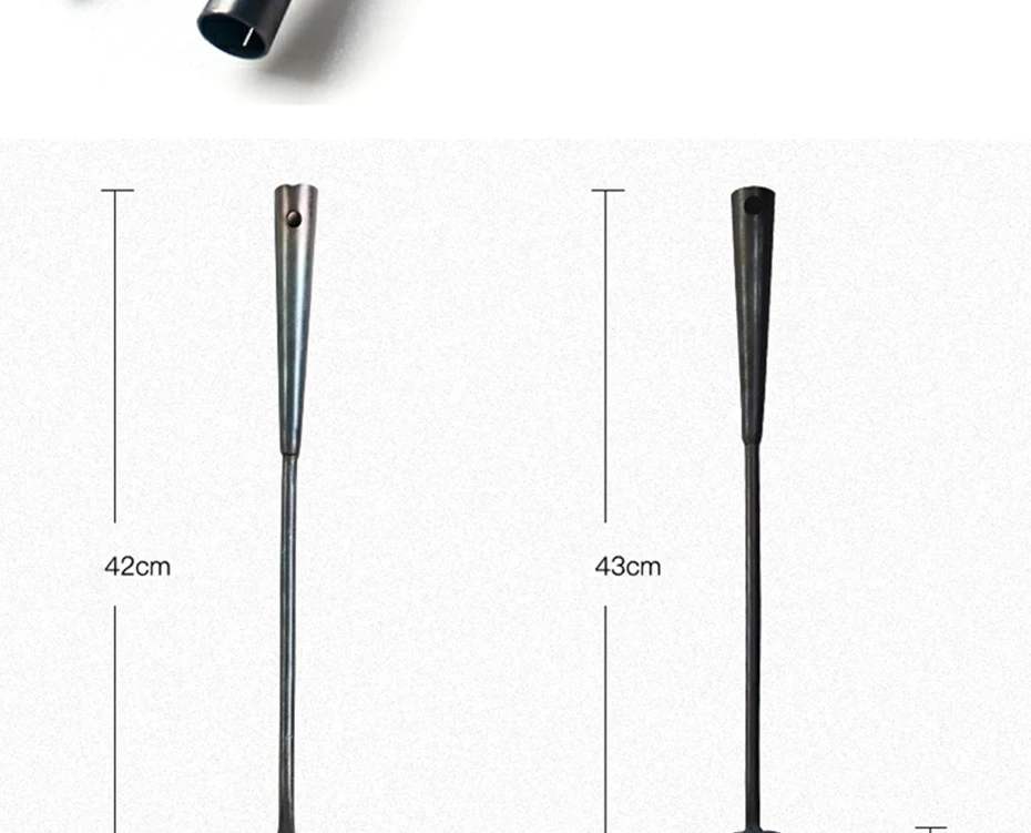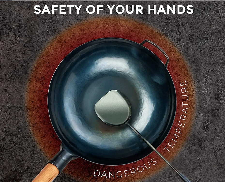 2.Premium Raw Material: Long wok utensils are made of high-quality 2.2 mm iron plate. Forging 150-200 hammers per ten square centimeters, thick, good hand feeling.